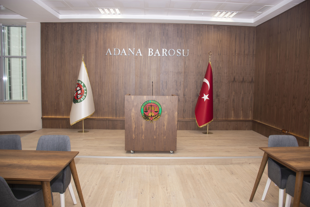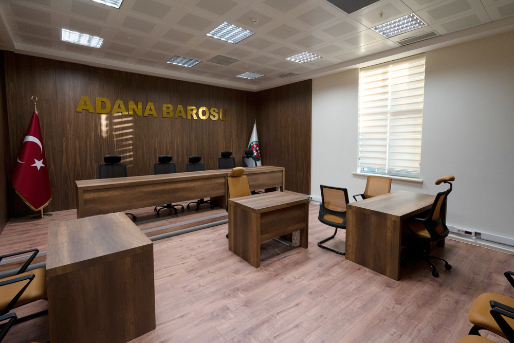 Duruşma salonu olarak hazırlanan bu oda Disiplin Kurulu duruşmaları ve staj eğitimlerinde kullanılmak üzere sanal duruşmaların yapılması için hazırlanmıştır.