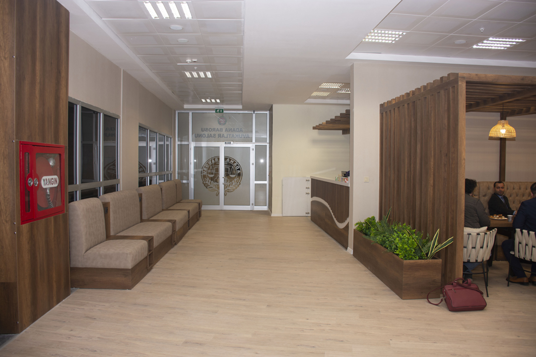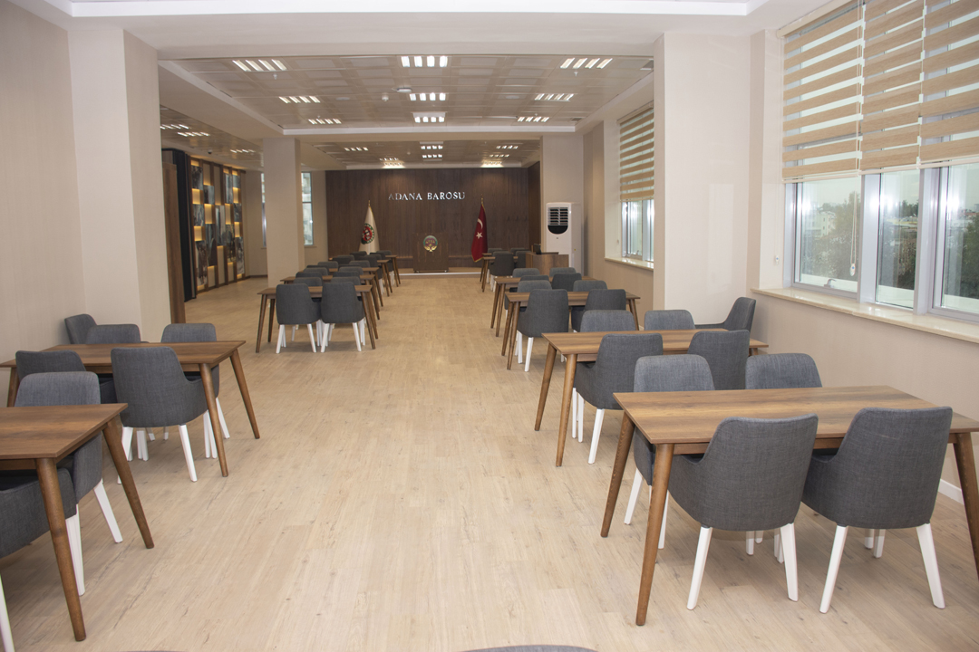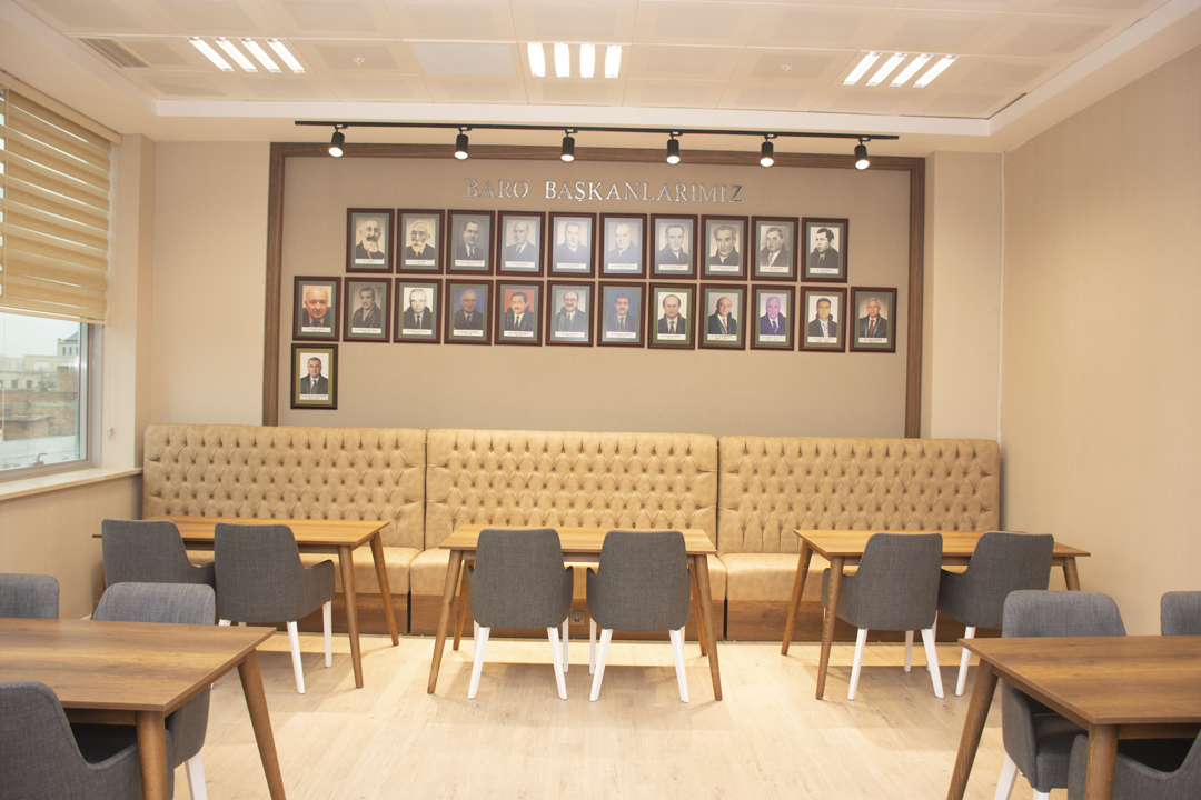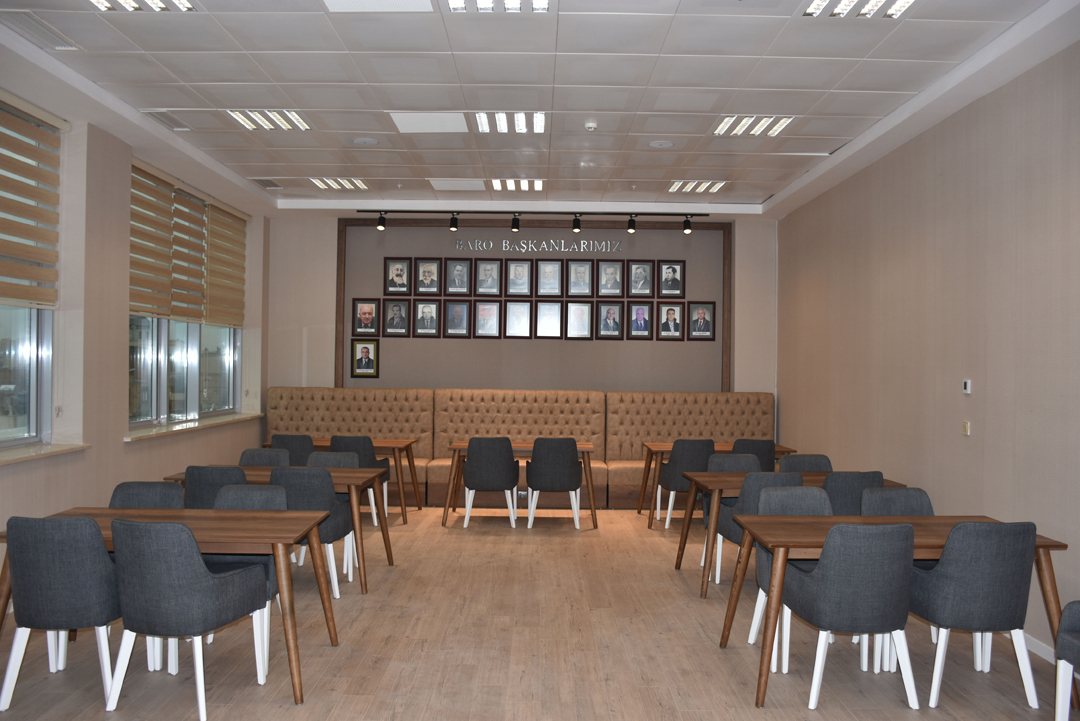 2. Kat Doğu Cephe'de bulunan Avukatlar Salonumuzda meslektaşlarımız için dinlenme, sohbet etme ve vakit geçirebilecekleri bir şekilde düzen sağlanmıştır. Ruhsat törenleri, staj eğitimlerimiz için salonumuz çok amaçlı kullanılmaktadır.