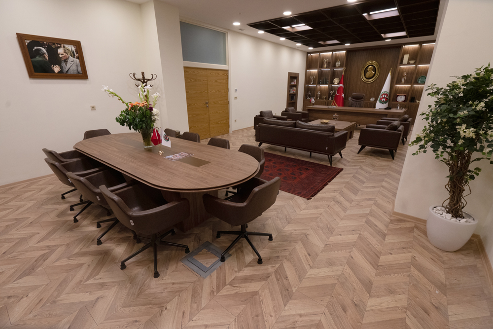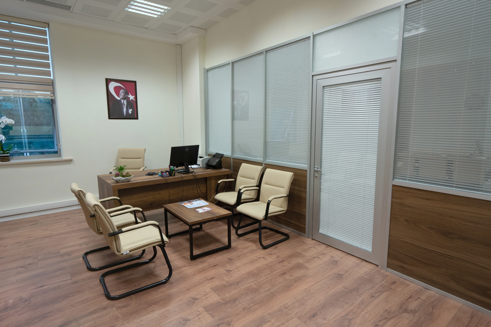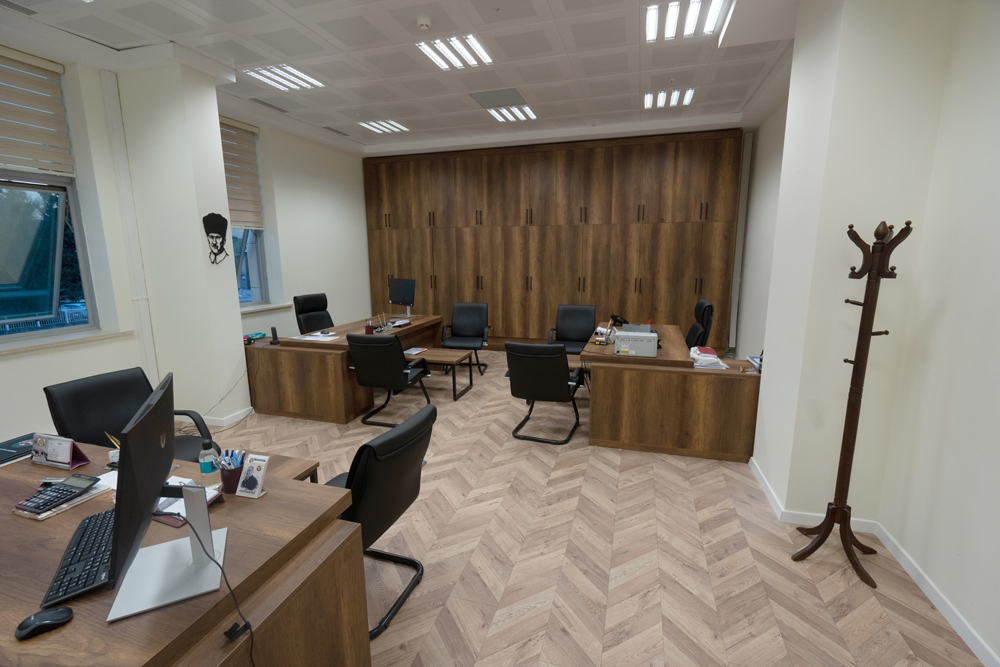 Oda cam bölme ile ikiye bölünmüş, giriş bölümü disiplin kurulu kalem odası, diğer kısım Disiplin Kurulu toplantıların yapılacağı toplantı bölümü olarak tasarlanmıştır.