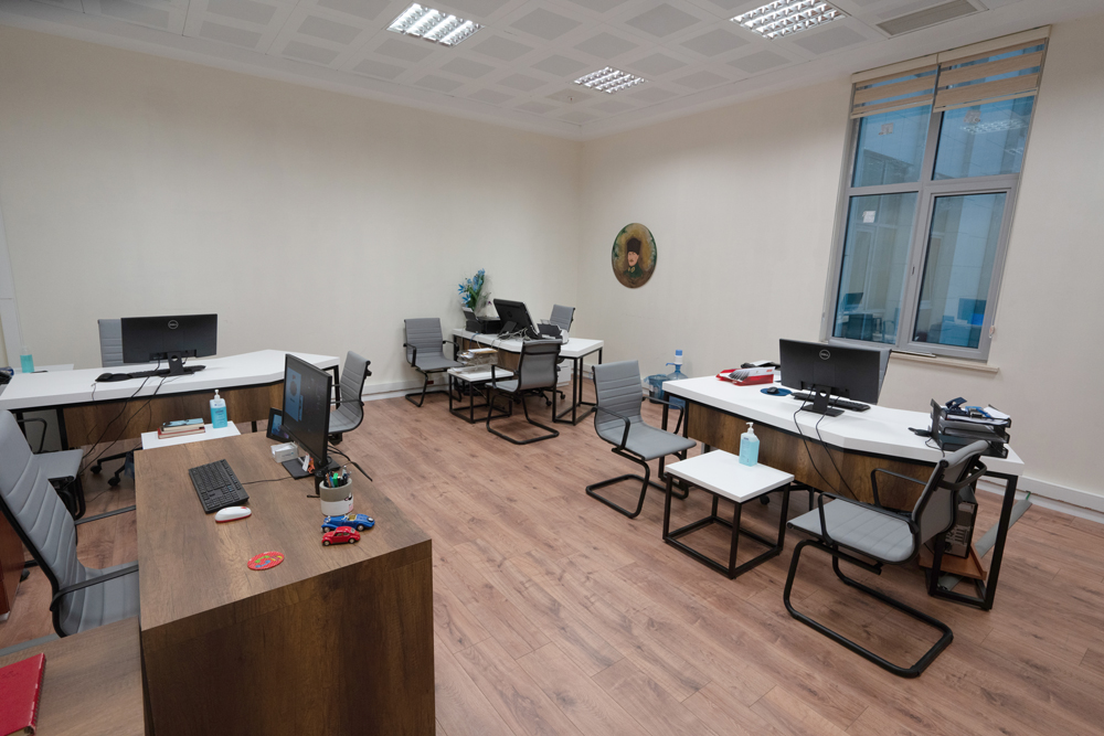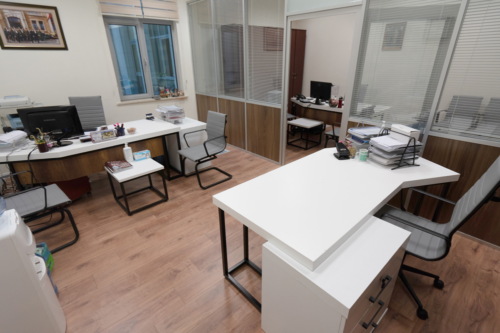 Giriş katında bulunan oda avukatların kullanımı için 8 adet bilgisayar çalışma bölümü, fotokopi, avukat dinlenme köşesi, vestiyer bölümü, orta kısımda bulunan çalışma masaları şekilde tasarlanarak hizmet verilmektedir.
