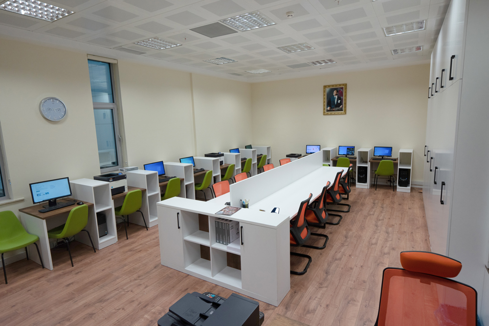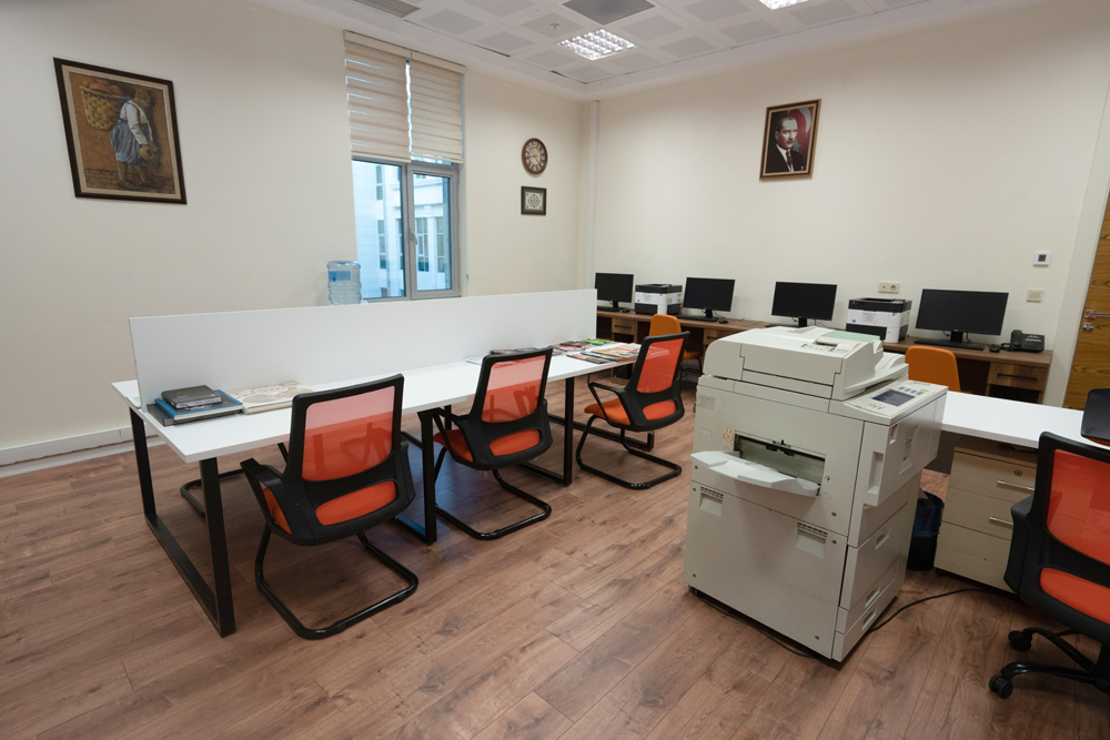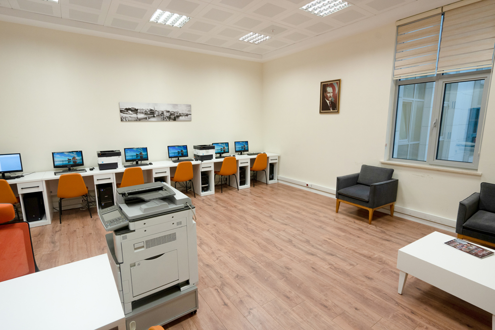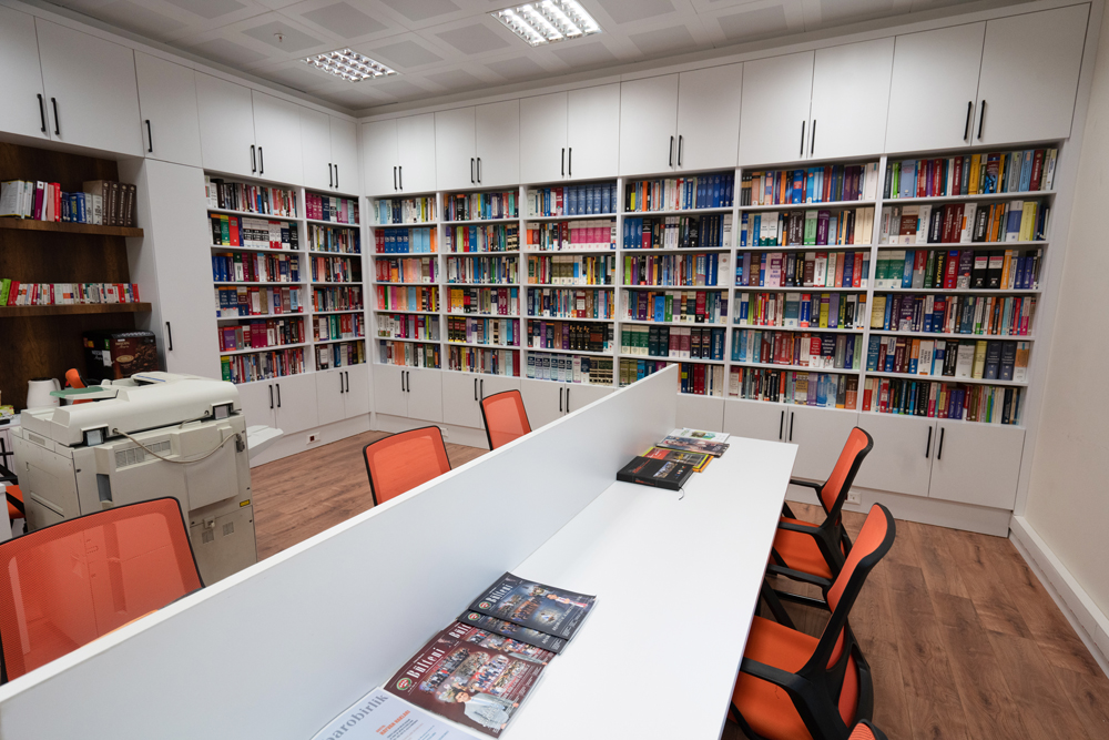 Dördüncü katta hazırlanan oda kütüphane olarak hazırlanmış, ayrıca odanın bir bölümü 4 adet bilgisayar çalışma kısmı, kitap okuma alanı, fotokopi ve orta kısımda bulunan çalışma masası ile hizmete sunulmuştur.
